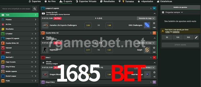 O 1685 bet oferece uma grande seleção de opções de apostas em e-sports com probabilidades competitivas